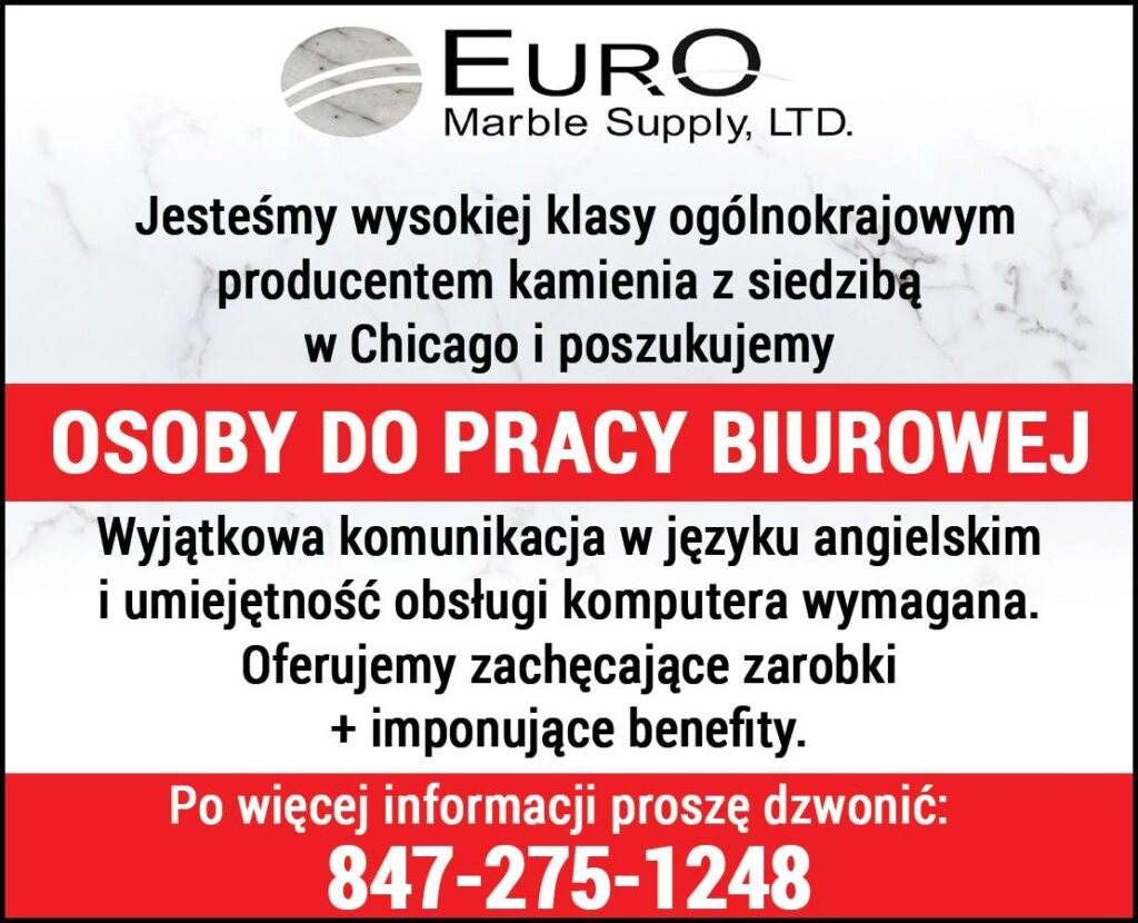 Euro Marble Supply Ltd. Jesteśmy wysokiej klasy ogólnokrajowym producentem kamienia z siedzibą w Chicago i poszukujemy OSOBY DO PRACY BIUROWEJ. Wyjątkowa komunikacja w języku angielskim i umiejętność obsługi komputera wymagana. Oferujemy zachęcające zarobki + imponujące benefity. Po wi […]