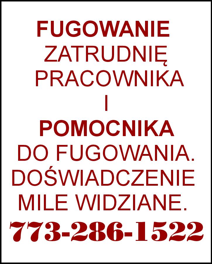 FUGOWANIE ZATRUDNIĘ PRACOWNIKA I POMOCNIKA DO FUGOWANIA DOŚWIADCZENIE MILE WIDZIANE. 773-286-1522