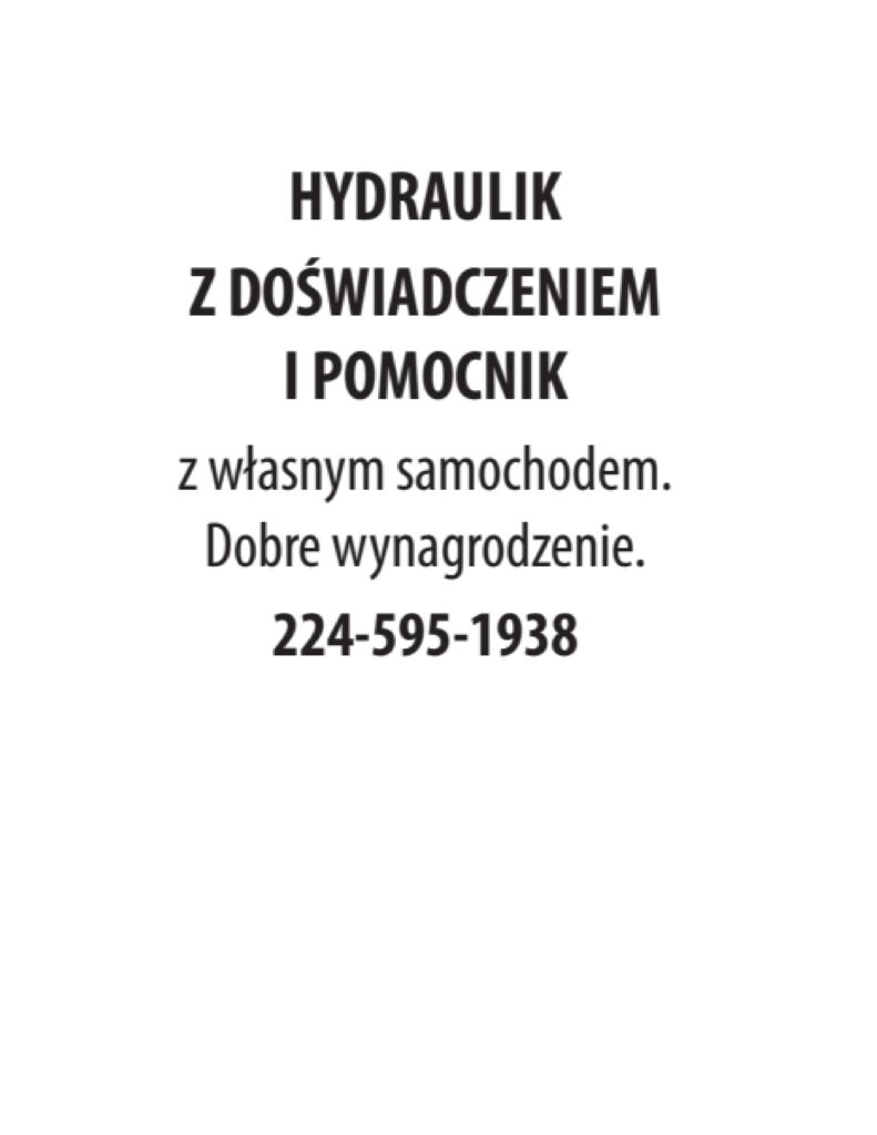 DYSPOZYTOR Z DOŚWIADCZENIEM Potzrebny doświadczony dyspozytor na dzienną zmianę. Stawka w zależności od doświadczenia. Biuro w Des Plaines, IL Dzwoń: 224-775-6231