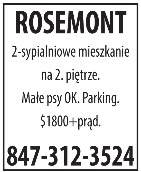 w Rosemont w godz. 7-10pm., 5 dni w tyg. Stały pobyt wymagany. 773-350-8987