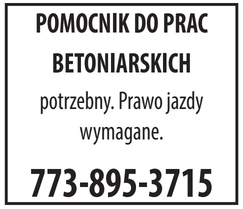 Zadzwoń na 773-763-3343, lub wyślij email na [email protected] Możesz też wypełnić formularz na ogłoszenia.dziennikzwiazkowy.com – skontaktujemy się z tobą, alby dopełnić formalności.