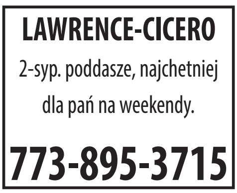 2-sypialniowe poddasze, najchetniej dla pań na weekendy. 773-895-3715