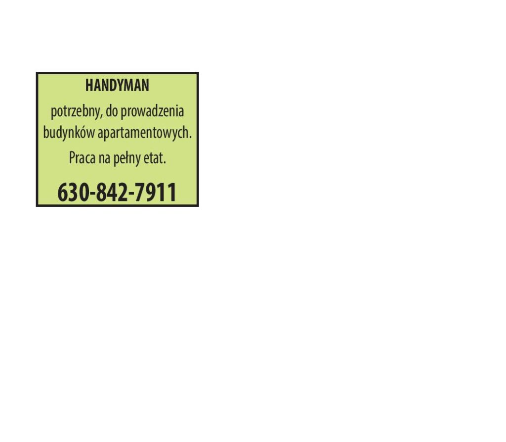 HANDYMAN potrzebny, do prowadzenia budynków apartamentowych. Praca na pełny etat. 630-842-7911
