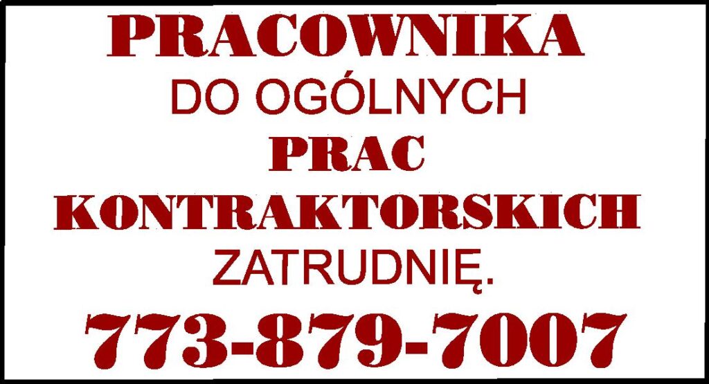 PRACOWNIKA DO OGÓLNYCH PRAC KONTRAKTORSKICH ZATRUDNIĘ. 773-879-7007