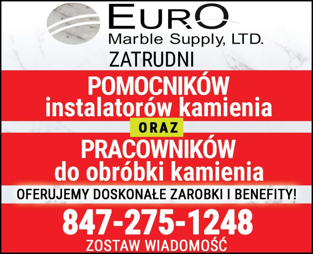 Euro Marble Supply Ltd. zatrudni POMOCNIKÓW instalatorów kamienia oraz PRACOWNIKÓW do obróbki kamienia. OFERUJEMY DOSKONAŁE ZAROBKI I BENEFITY! 847-275-1248 Zostaw wiadomość