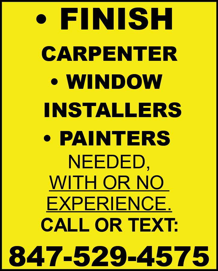 Pomocnik z doświadczeniem potrzebny. $20-$25/godz. na start. Płn. przedmieścia. 224-209-0910