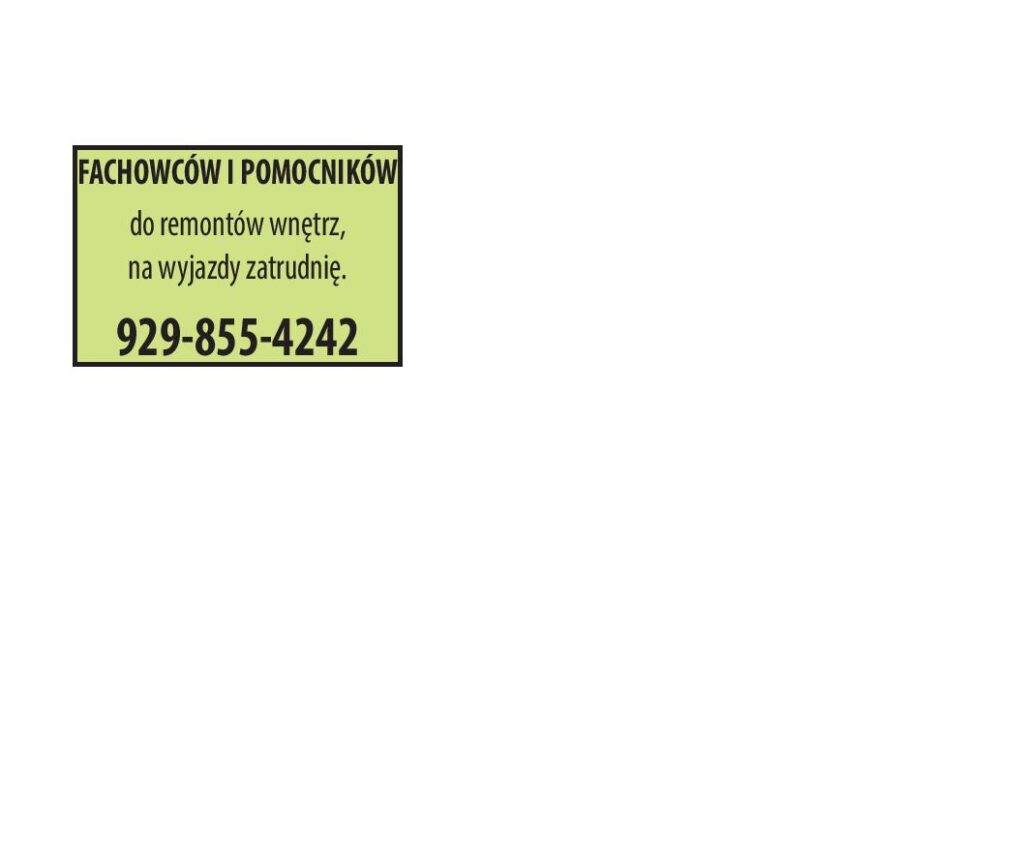 FACHOWCÓW I POMOCNIKÓW do remontów wnętrz, na wyjazdy zatrudnię. 929-855-4242