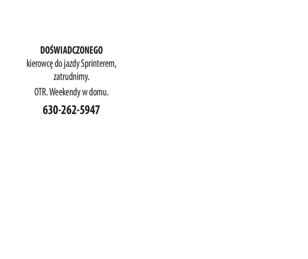 KIEROWCÓW (WŁAŚCICIELI) POSZUKUJEMY. Firma transportowa w Chicago, zatrudni kierowców z własnym Sprinterem lub Straight Trucks. Trasy po wszystkich Stanach. 773-849-3923