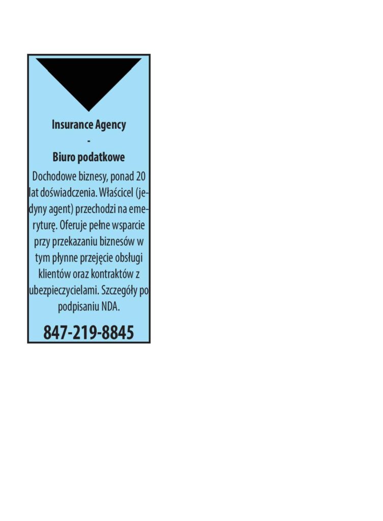 Insurance Agency - Biuro podatkowe Dochodowe biznesy, ponad 20 lat doświadczenia. Właściciel (jedyny agent) przechodzi na emeryturę. Oferuje pełne wsparcie przy przekazaniu biznesów w tym płynne przejęcie obsługi klientó […]