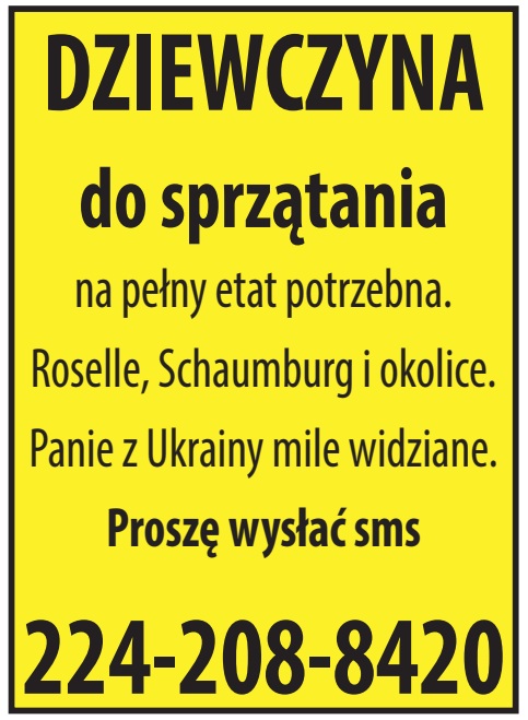Ogłoszenia Dziennika Związkowego to największa baza najskuteczniejszych polonijnych ogłoszeń drobnych w Chicago. Jeżeli szukasz pracy, chcesz wynająć mieszkanie, coś kupić lub sprzedać, znaleźć fachowca, lub pracownika – załatwisz to najszybciej i nataniej korzystając z Ogłoszeń drobnych w Dzienniku Związkowym. Co tydzień do naszej bazy trafia niemal tysiąc ogłoszeń. Są one publikowane w Dzienniku Związkowym – największej polskojęzycznej gazecie w Stanach Zjednoczonych, winternecie, oraz na Facebooku. Zamieść ogłoszenie w Dzienniku Związkowym. Tu znajdziesz czego szukasz! Tu załatwisz wszystko!