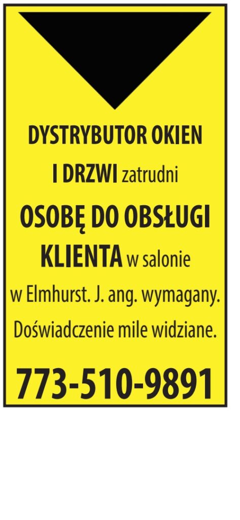 DYSTRYBUTOR OKIEN I DRZWI zatrudni OSOBĘ DO OBSŁUGI KLIENTA w salonie w Elmhurst. J. ang. wymagany. Doświadczenie mile widziane. 773-510-9891