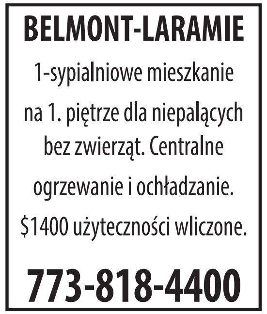 1-sypialniowe mieszkanie na 1. piętrze dla niepalących bez zwierząt. Centralne ogrzewanie i ochładzanie. $1400 użyteczności wliczone. 773-818-4400