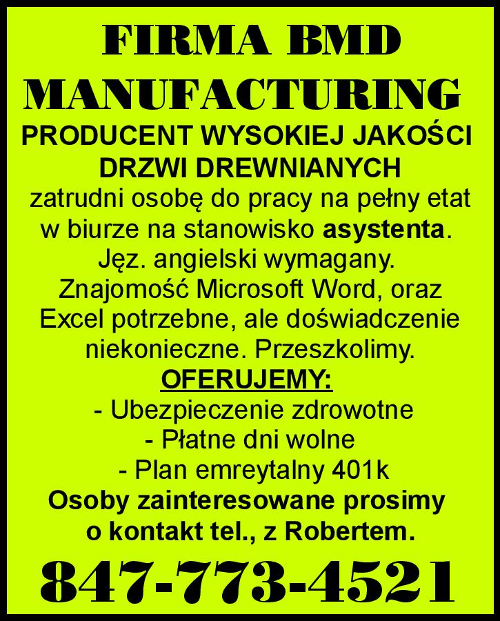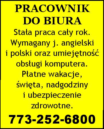 w dużej firmie w Des Plaines, IL potrzebny. 773-791-0095