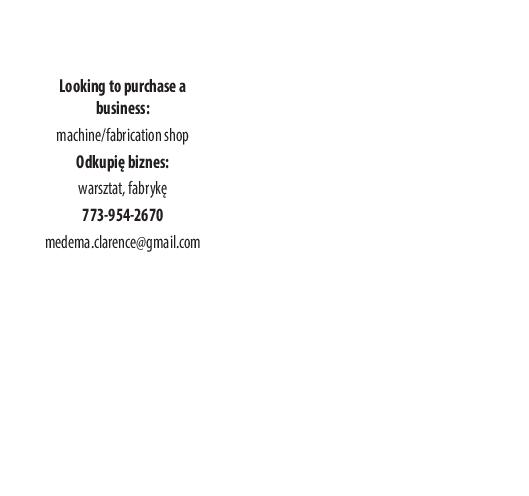 Looking to purchase a business: machine/fabrication shop Odkupię biznes: warsztat, fabrykę 773-954-2670 [email protected]
