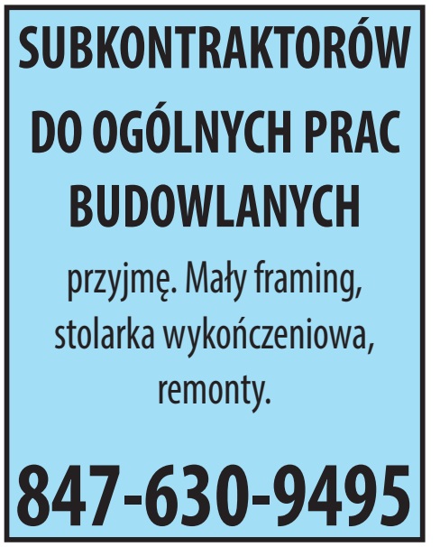 przyjmę. Mały framing, stolarka wykończeniowa, remonty. 847-630-9495