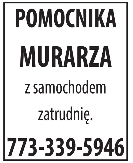 Doświadczonego pomocnika zatrudnię. Wypłata gotówką. Zabieram Harlem-Belmont. 773-205-7590