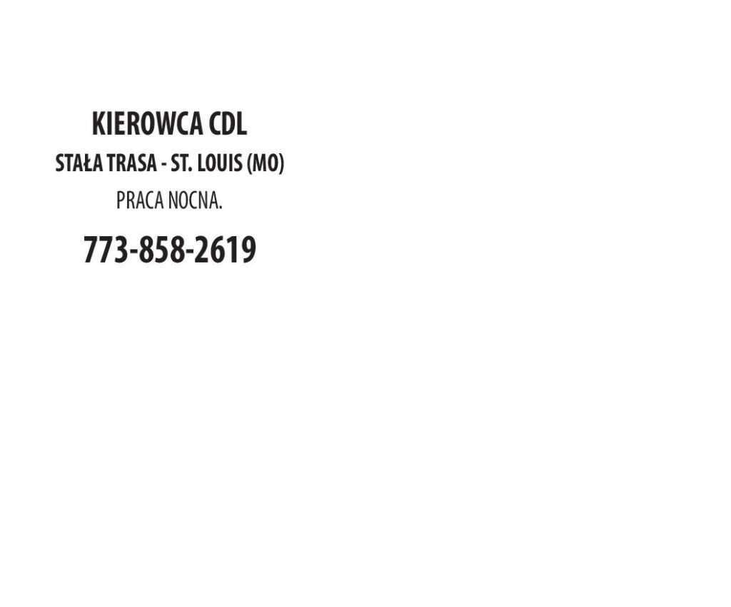 KIEROWCA CDL STAŁA TRASA - ST. LOUIS (MO) PRACA NOCNA. 773-858-2619