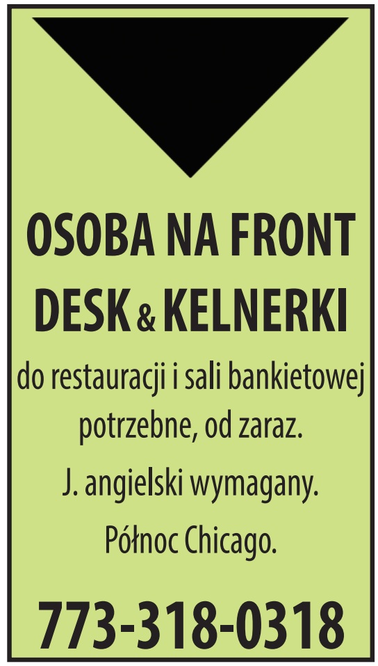 do restauracji i sali bankietowej potrzebne. J. angielski wymagany. Północ Chicago. 773-318-0318