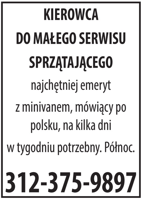 najchętniej emeryt z minivanem, mówiący po polsku, na kilka dni w tygodniu potrzebny. Północ. 312-375-9897