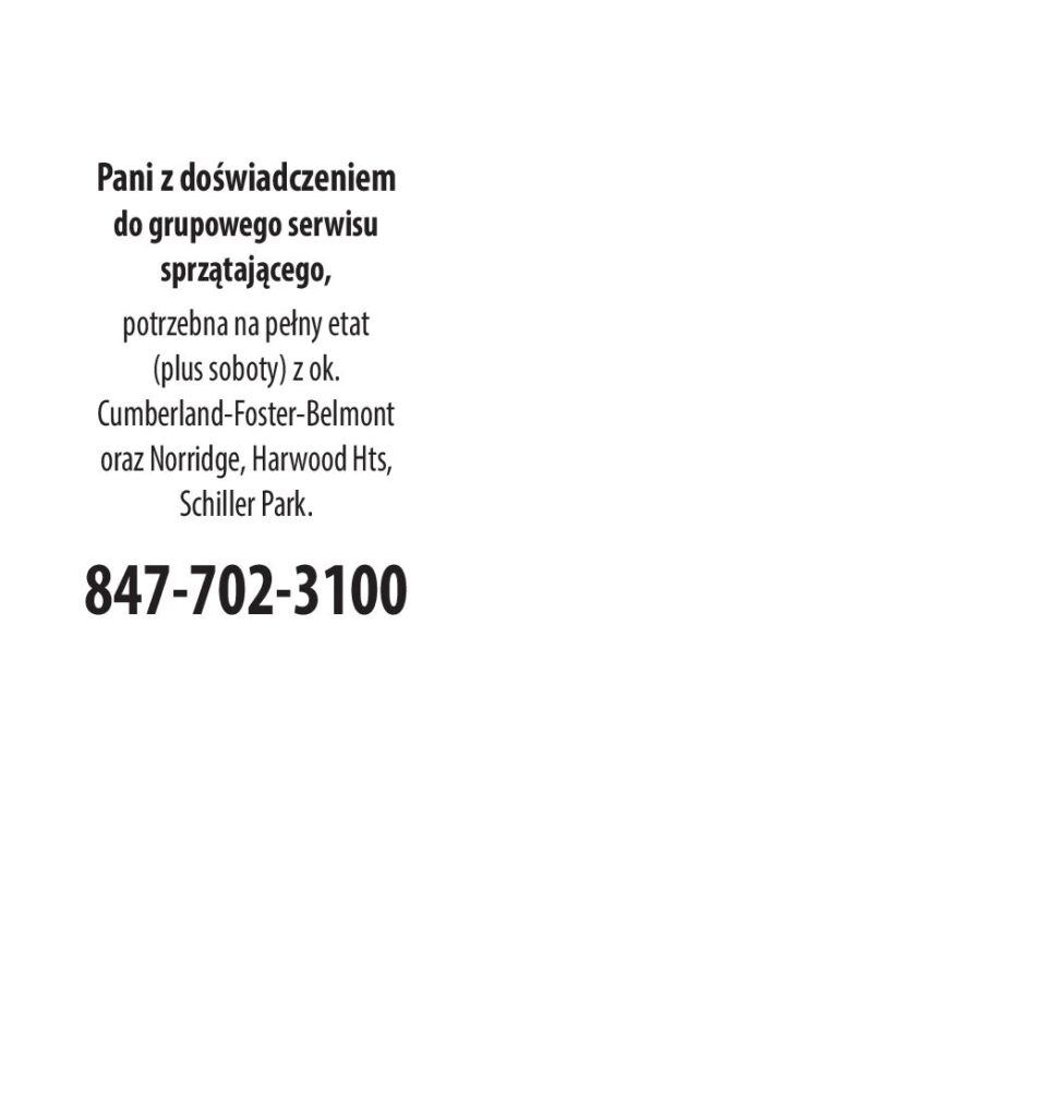 potrzebne od zaraz. Transport zapewniony z okolic: Belmont-Harlem-Cumberland, Schiller Park, Franklin Park. 630-421-0809
