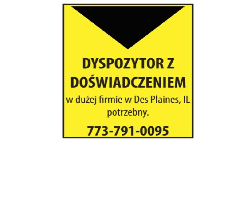 DYSPOZYTOR Z DOŚWIADCZENIEM utworzone przez NewsReporting | mar 5, 2026 Biurowa DYSPOZYTOR Z DOŚWIADCZENIEM Dodał:NewsReporting 03/05/2026 Opis ogłoszeniaw dużej firmie w Des Plaines, IL potrzebny. 773-791-0095 Telefon(773) 791 0095 Udostępnij:
