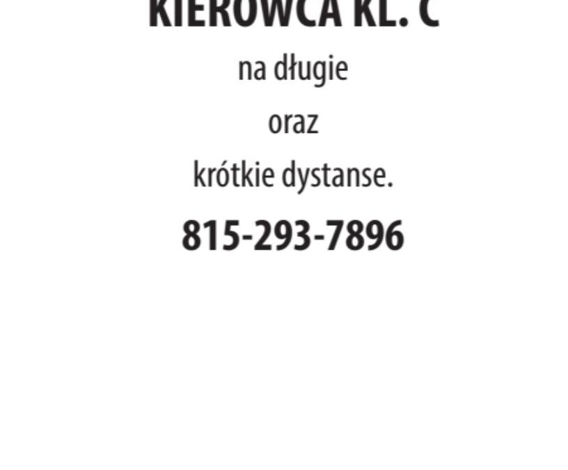 KIEROWCA KL. C utworzone przez NewsReporting | kwi 1, 2026 Dla kierowców KIEROWCA KL. C Dodał:NewsReporting 04/01/2026 Opis ogłoszeniana długie oraz krótkie dystanse. 815-293-7896 Udostępnij: Telefon(815) 293 7896 Udostępnij: