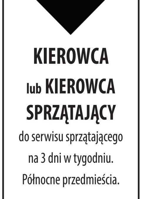 KIEROWCA lub KIEROWCA SPRZĄTAJĄCY utworzone przez QualityClassifiedArt | sty 6, 2026 Sprzątanie KIEROWCA lub KIEROWCA SPRZĄTAJĄCY Dodał:QualityClassifiedArt 01/06/2026 Opis ogłoszeniado serwisu sprzątającego na 3 dni w tygodniu. Północne przedmieścia. 773-304-7304 Udostępnij: Telefon(773) 304 7304 Udostępnij: