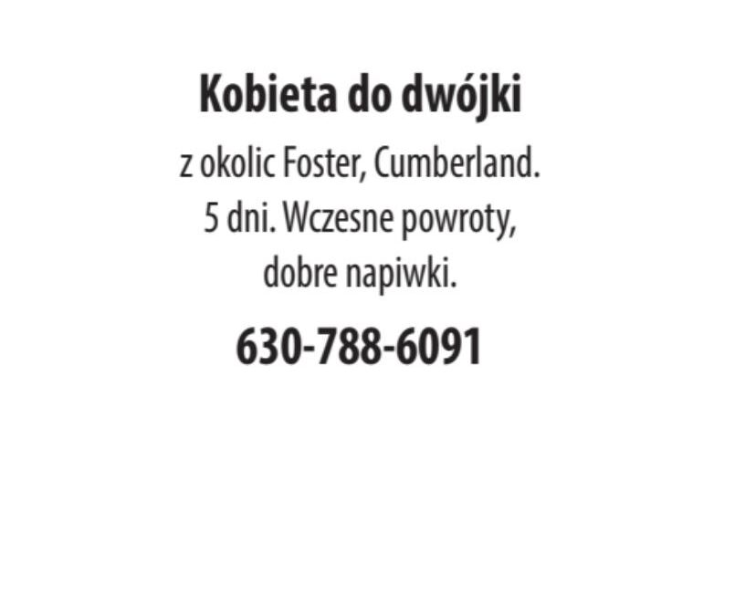 Kobieta do dwójki utworzone przez NewsReporting | kwi 20, 2026 Sprzątanie Kobieta do dwójki Dodał:NewsReporting 04/20/2026 Opis ogłoszeniaz okolic Foster, Cumberland. 5 dni. Wczesne powroty, dobre napiwki. 630-788-6091 Udostępnij: Telefon(630) 788 6091 Udostępnij:
