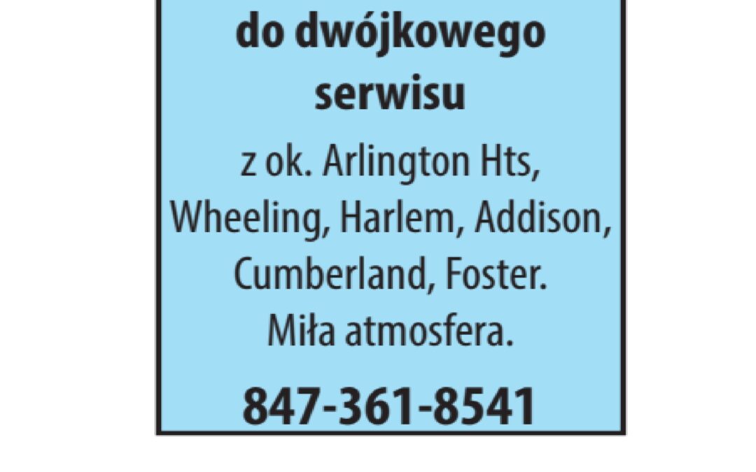 Kobieta do dwójkowego serwisu utworzone przez NewsReporting | gru 26, 2025 Sprzątanie Kobieta do dwójkowego serwisu Dodał:NewsReporting 12/26/2025 Opis ogłoszeniaz ok. Arlington Hts, Wheeling, Harlem, Addison, Cumberland, Foster. Miła atmosfera. 847-361-8541 Udostępnij: Telefon(847) 361 8541 Udostępnij: