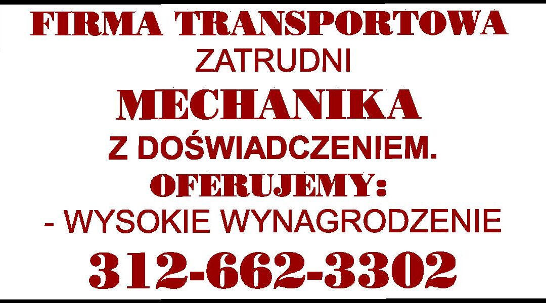MECHANIK Z DOŚWIADCZENIEM utworzone przez Czesia | lis 18, 2025 Praca Różna MECHANIK Z DOŚWIADCZENIEM Dodał:Czesia 11/18/2025 Opis ogłoszeniaFIRMA TRANSPORTOWA ZATRUDNI MECHANIKA Z DOŚWIADCZENIEM. OFERUJEMY: – WYSOKIE WYNAGRODZENIE 312-662-3302 Udostępnij: Telefon(312) 662 3302 Udostępnij: