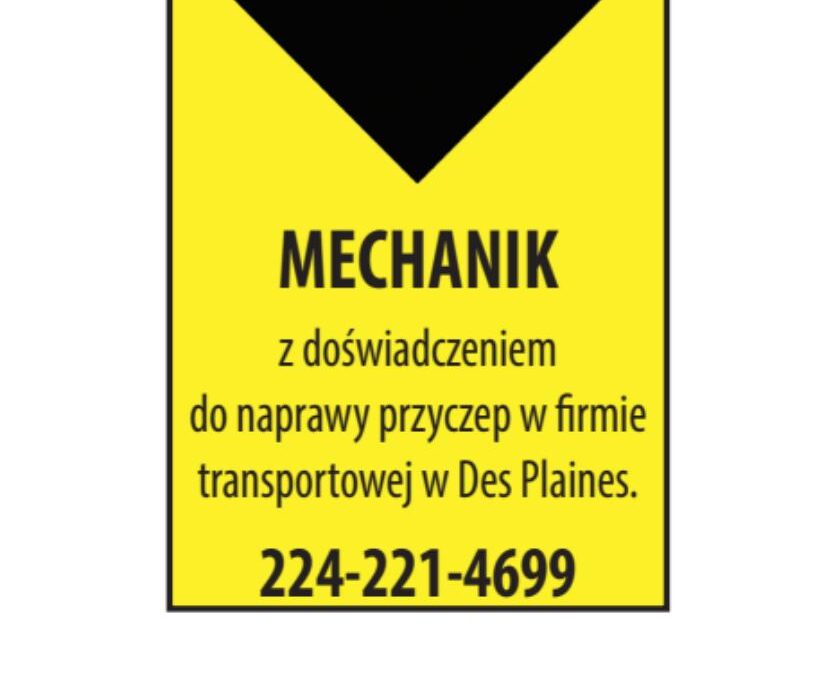 MECHANIK utworzone przez NewsReporting | kwi 1, 2026 Praca Różna MECHANIK Dodał:NewsReporting 04/01/2026 Opis ogłoszeniaz doświadczeniem do naprawy przyczep w firmie transportowej w Des Plaines. 224-221-4699 Udostępnij: Telefon(224) 221 4699 Udostępnij: