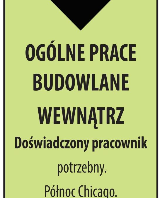 OGÓLNE PRACE BUDOWLANE WEWNĄTRZ utworzone przez QualityClassifiedArt | mar 18, 2026 Budowlana OGÓLNE PRACE BUDOWLANE WEWNĄTRZ Dodał:QualityClassifiedArt 03/18/2026 Opis ogłoszeniaDoświadczony pracownik potrzebny. Północ Chicago. 773-966-1111 Telefon(773) 966 1111 Udostępnij: