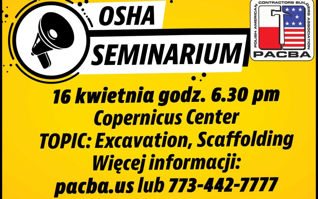 OSHA SEMINARIUM utworzone przez NewsReporting | kwi 9, 2026 Rozmaite OSHA SEMINARIUM Dodał:NewsReporting 04/09/2026 Opis ogłoszenia16 kwietnia godz. 6.30 pm. Copernicus Center. TOPIC: Excavation, scaffolding. Więcej informacji: pacba.us lub 773-442-7777 Udostępnij: Telefon(773) 442 7777 Udostępnij: