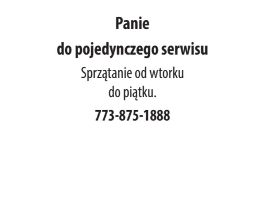 Sprzątanie od wtorku do piątku. 773-875-1888