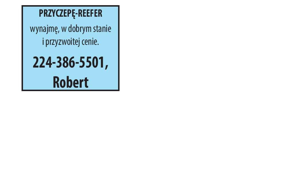 PRZYCZEPĘ-REEFER utworzone przez Czesia | paź 2, 2025 Dla kierowców PRZYCZEPĘ-REEFER Dodał:Czesia 10/02/2025 Opis ogłoszeniaPRZYCZEPĘ-REEFER wynajmę, w dobrym stanie i przyzwoitej cenie. 224-386-5501, Robert Udostępnij: Telefon(224) 386 5501 Udostępnij: