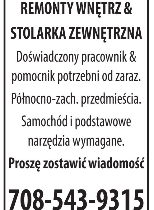 Doświadczony pracownik & pomocnik potrzebni od zaraz.