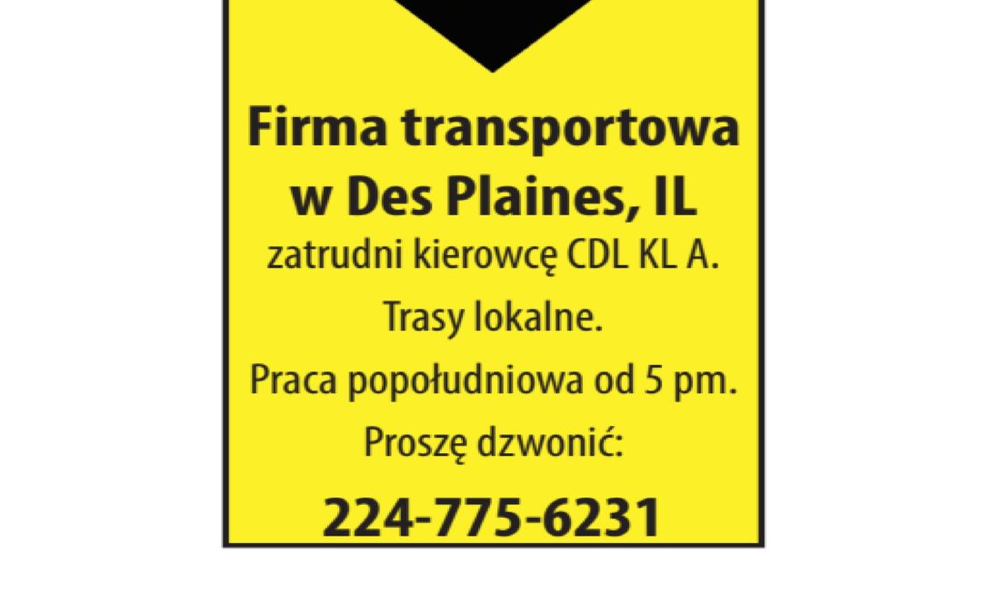 Firma transportowa w Des Plaines, IL zatrudni kierowcę CDL KL A.
