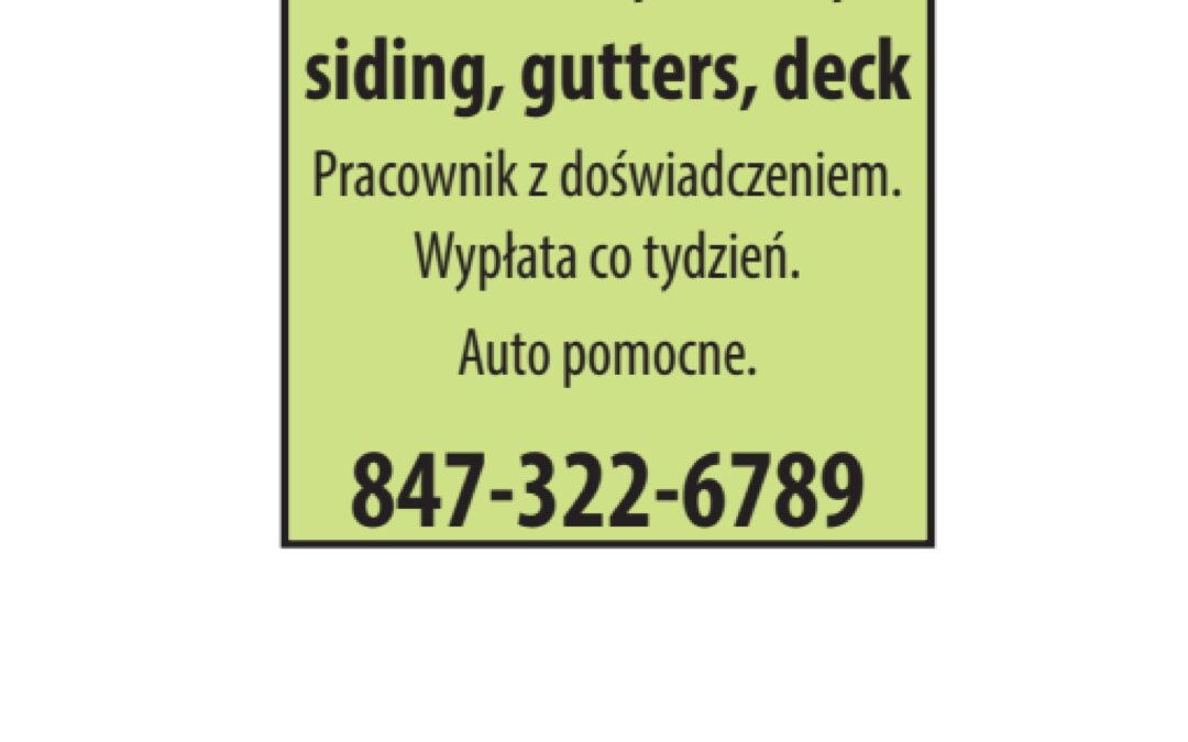 Windows, doors, siding, gutters, deck utworzone przez NewsReporting | kwi 3, 2026 Budowlana Windows, doors, siding, gutters, deck Dodał:NewsReporting 04/03/2026 Opis ogłoszeniaPracownik z doświadczeniem. Wypłata co tydzień. Auto pomocne. 847-322-6789 Udostępnij: Telefon(847) 322 6789 Udostępnij: