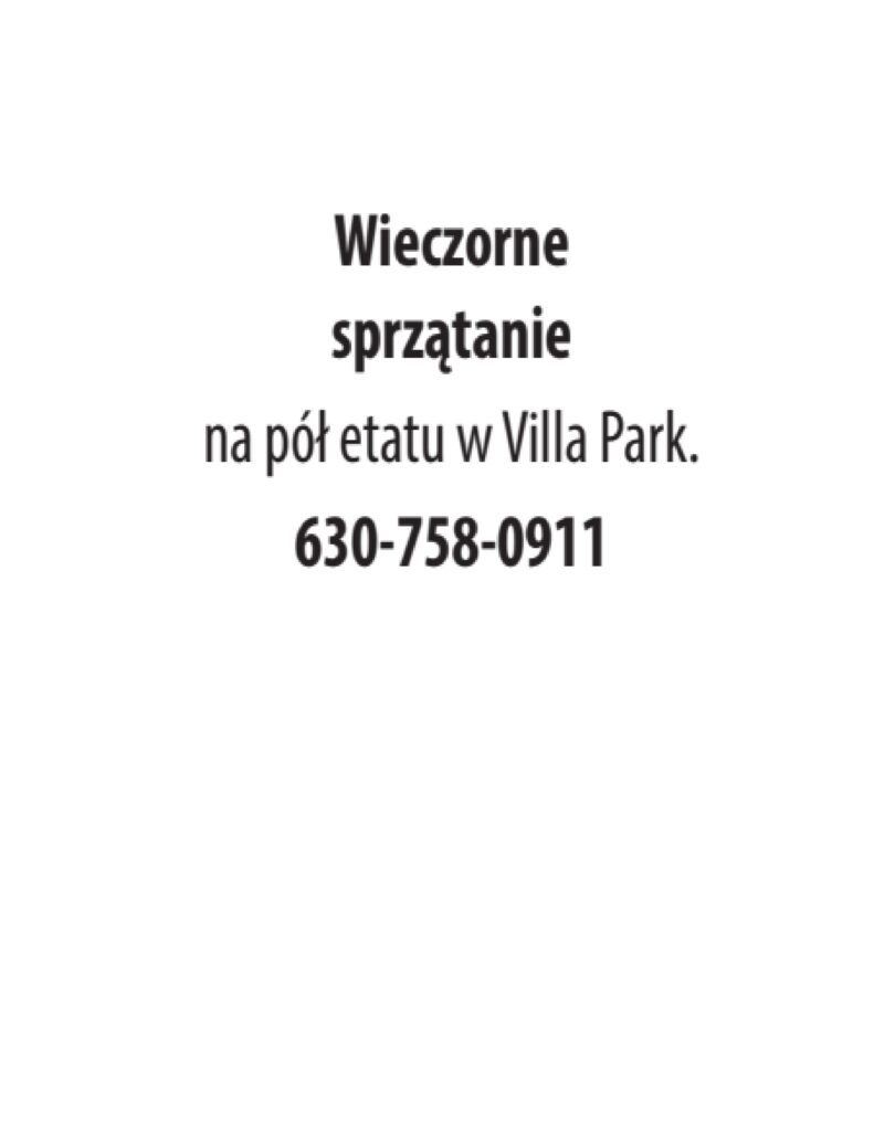 do serwisu sprzątającego na 3 dni w tygodniu. Północne przedmieścia. 773-304-7304