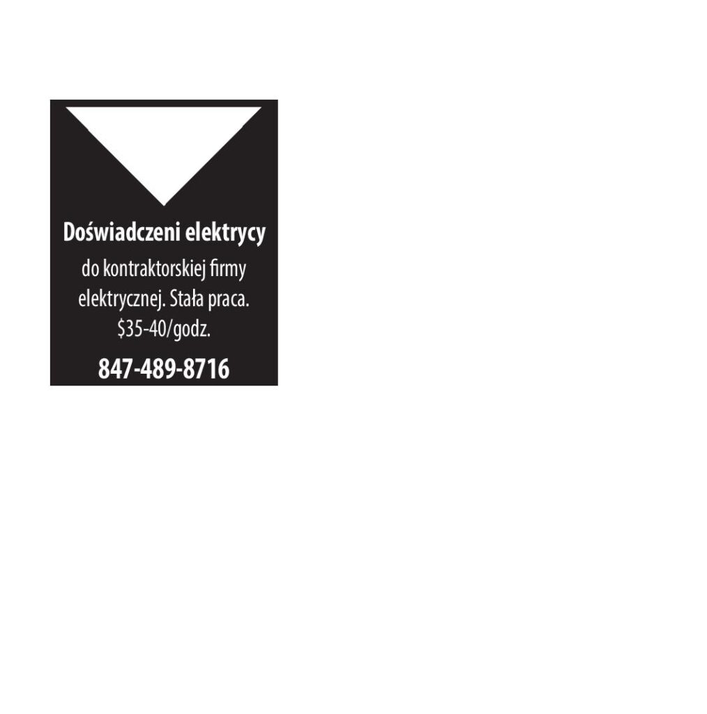 Doświadczeni elektrycy do kontraktorskiej firmy elektrycznej. Stała praca. $35-40/godz. 847-489-8716