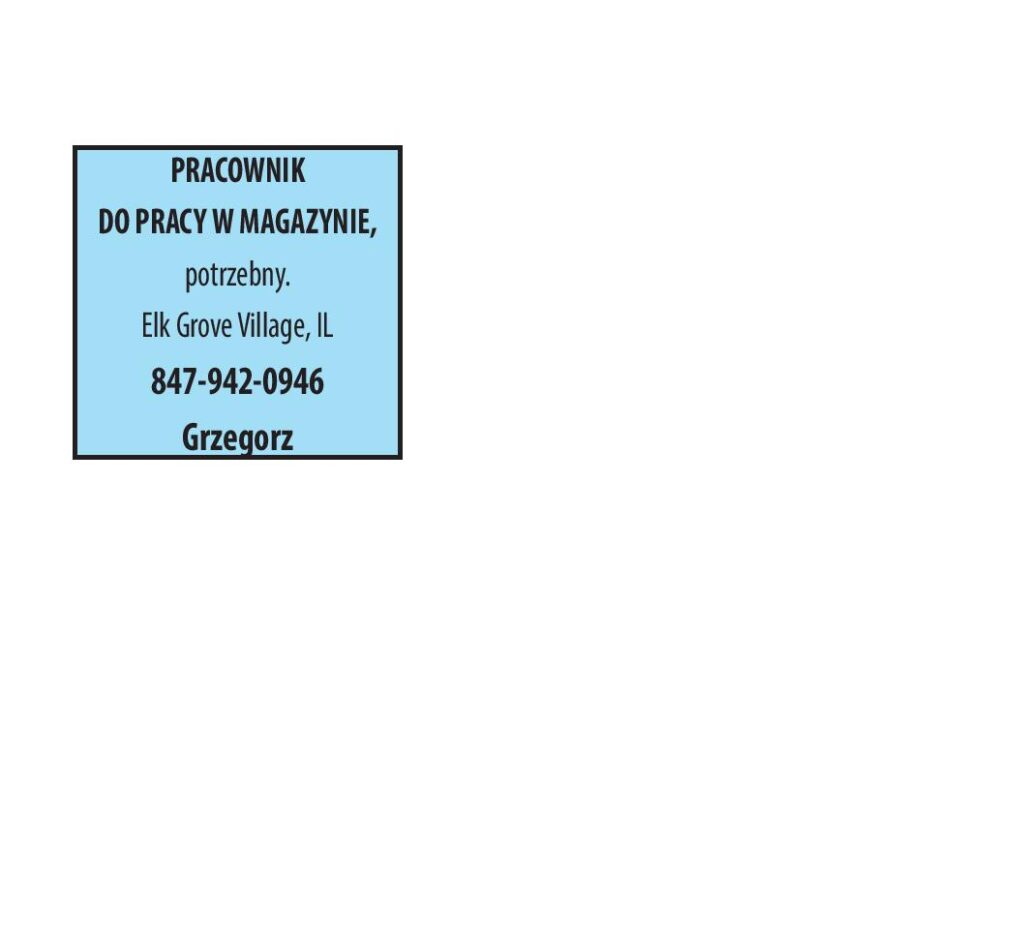 PRACOWNIK DO PRACY W MAGAZYNIE, potrzebny. Elk Grove Village, IL 847-942-0946 Grzegorz