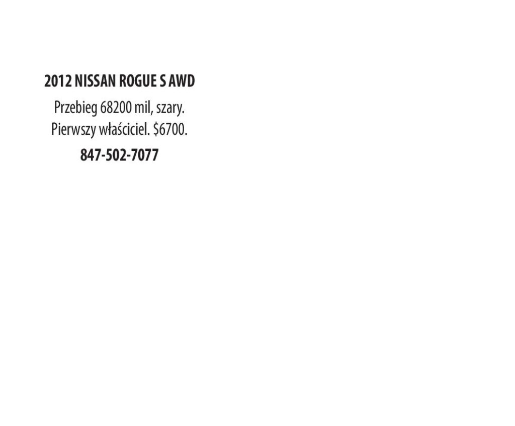 2012 NISSAN ROGUE S AWD Przebieg 68200 mil, szary. Pierwszy właściciel. $6700. 847-502-7077