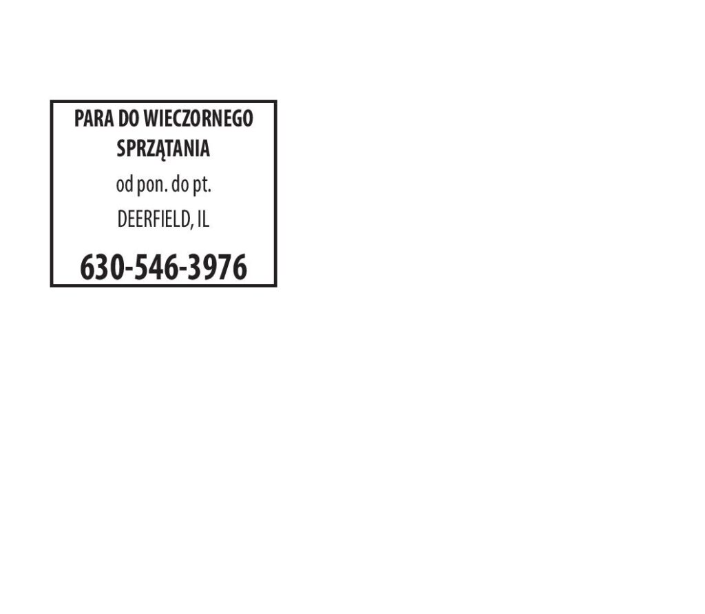 PARA DO WIECZORNEGO SPRZĄTANIA od pon. do pt. DEERFIELD, IL 630-546-3976