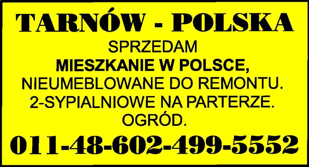 TARNÓW - POLSKA SPRZEDAM MIESZKANIE W POLSCE NIEUMEBLOWANE DO REMONTU. 2-SYPIALNIOWE NA PARTERZE. OGRÓD. 011-48-602-499-5552