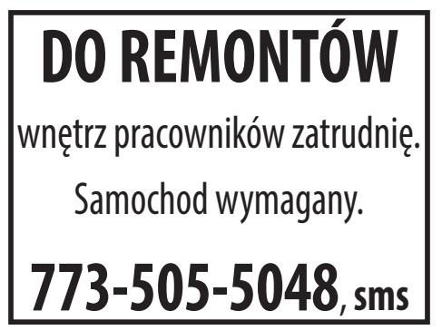 pracowników zatrudnię. Samochod wymagany. 773-505-5048, sms