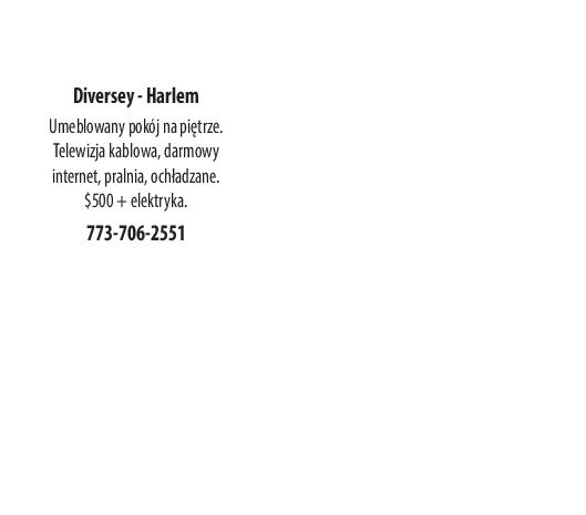 Diversey - Harlem Umeblowany pokój na piętrze. Telewizja kablowa, darmowy internet, pralnia, ochładzane. $500 + elektryka. 773-706-2551