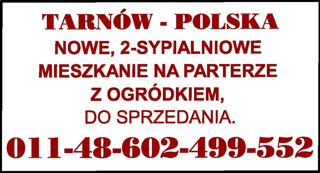 TARNÓW - POLSKA NOWE, 2-SYPIALNIOWE MIESZKANIE NA PARTERZE Z OGRÓDKIEM, DO SPRZEDANIA. 011-48-602-499-552