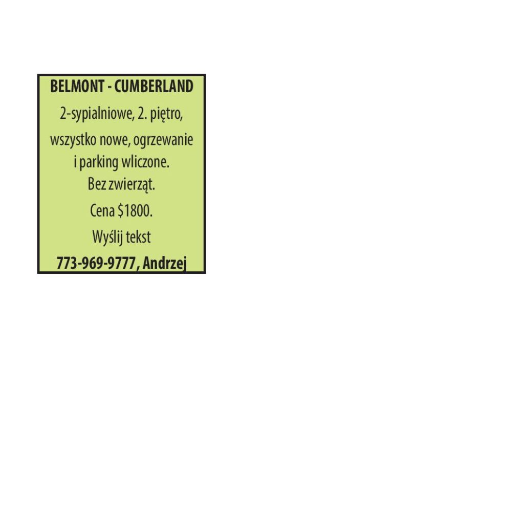 BELMONT - CUMBERLAND 2-sypialniowe, 2. piętro, wszystko nowe, ogrzewanie i parking wliczone. Bez zwierząt. Cena $1800. Wyślij tekst 773-969-9777, Andrzej