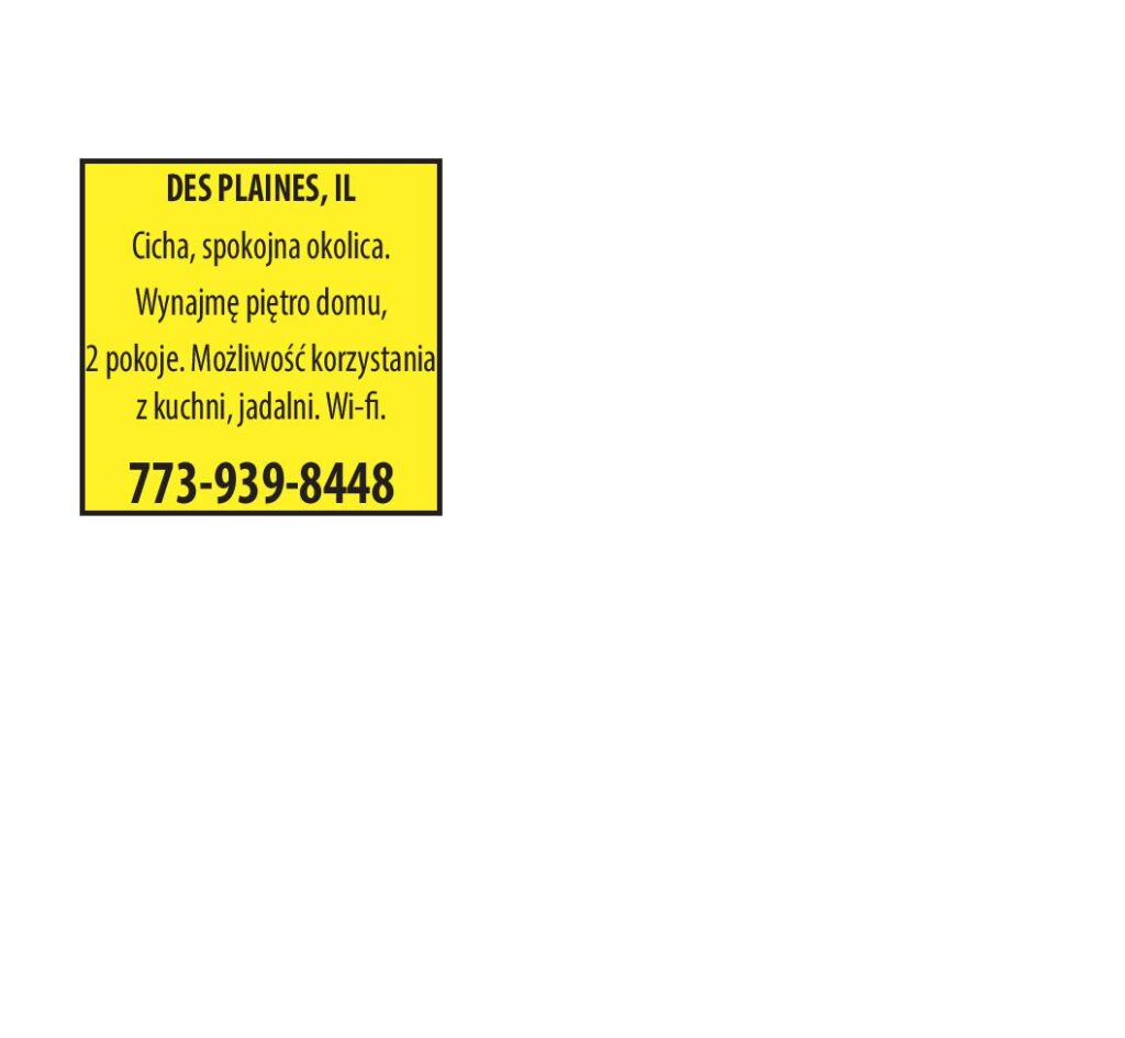 DES PLAINES, IL Cicha, spokojna okolica. Wynajmę piętro domu, 2 pokoje. Możliwość korzystania z kuchni, jadalni. Wi-fi. 773-939-8448