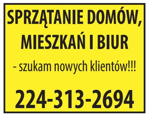 DZIEWCZYNA DO SPRZĄTANIA DOMÓW na cały tydzień potrzebna. Praca w godz. 8 am-3.30 pm. Pólnoc Chicago. 312-937-5807